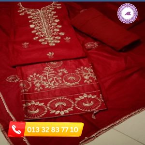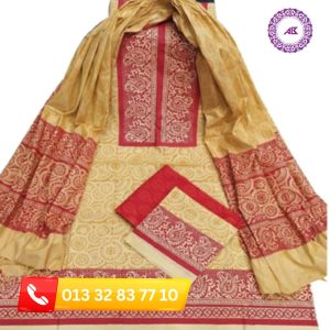 Unstitched Cotton Jaypuri Screen Print Embroidery Three Piece